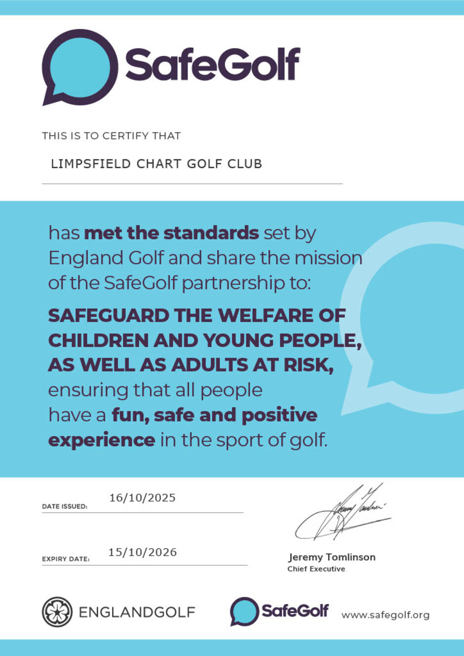 Limpsfield Chart Golf Club Children and Young People Safeguarding Policy and Procedures